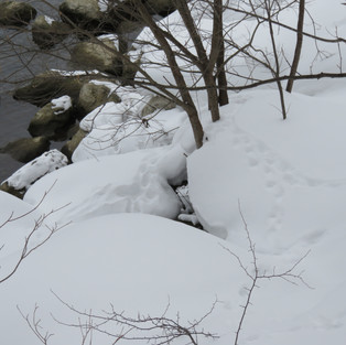 途中知り合いのガイドさんと遭遇。雪まろげを撮影にいらしたカメラ愛好家をガイドしていらっしゃいました。以前はかもしかと遭遇することができたのに、最近は木の伐採等でかもしかも上林温泉近くの里に下っているとのこと。足跡を見ると動物との共存?動物のテリトリーにお邪魔しているような気がしました。